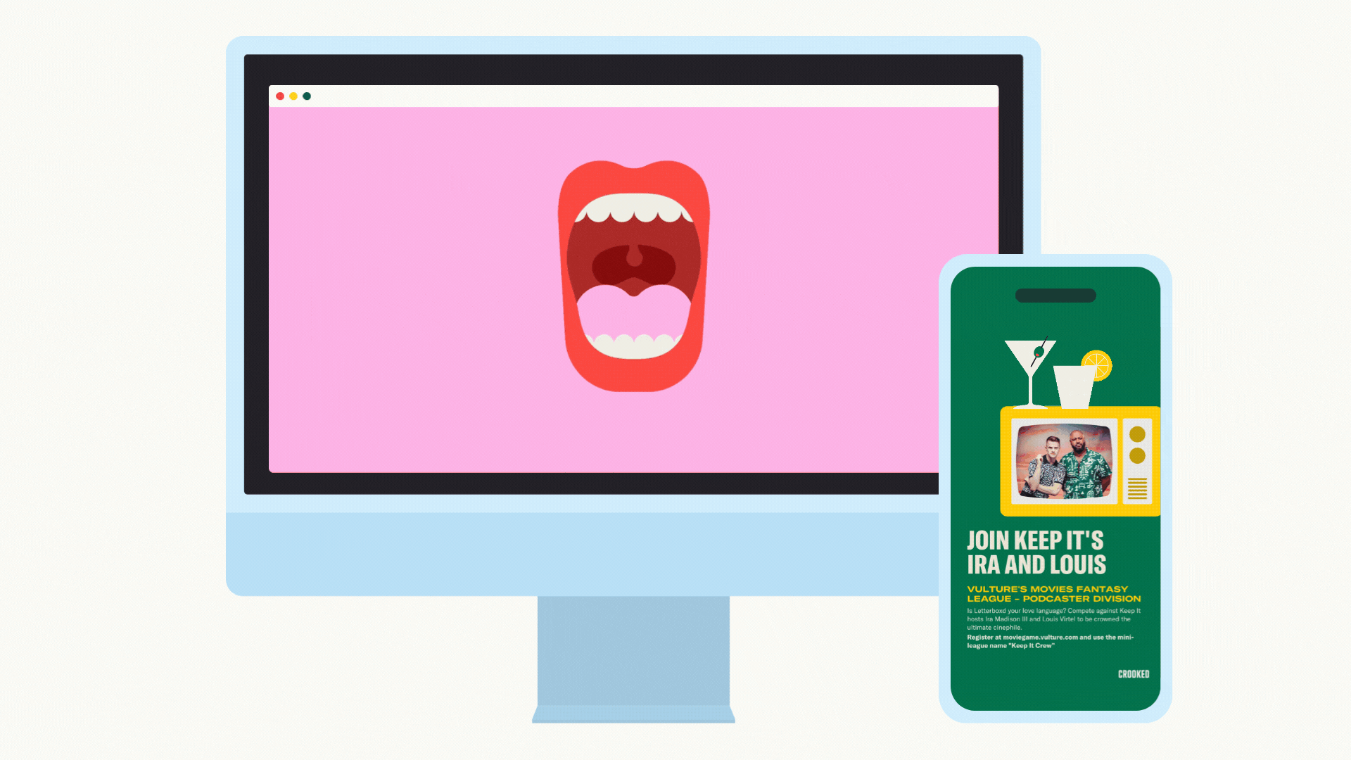 Series of vectorized animations based on the key art for Crooked Media’s flagship podcasts to be used across social media and video channels.