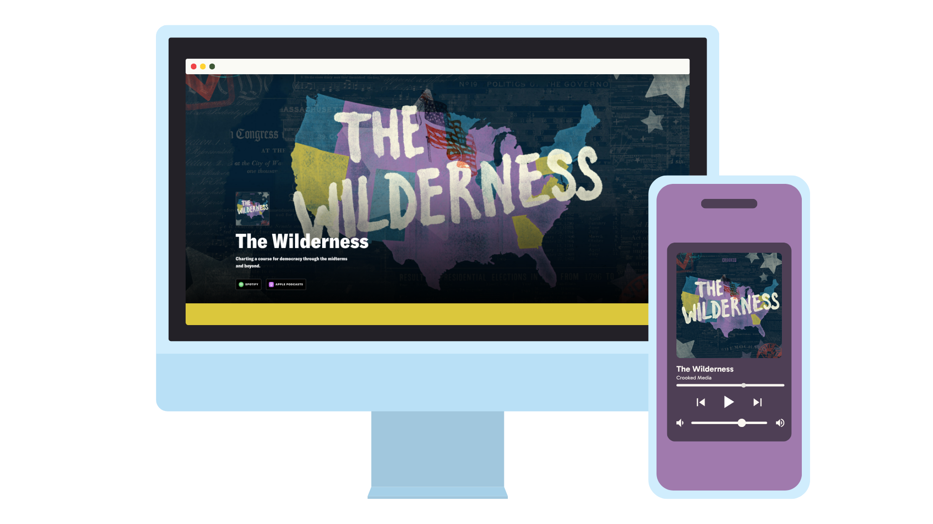 In 2022, I created the artwork for season 3 of Crooked Media’s “The Wilderness,” a podcast investigating the voting habits of Americans. In season 3, host Jon Favreau spoke to voters in key 2022 midterm battleground regions to determine how Democrats could defeat Trumpism in the upcoming election.